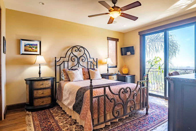 The Riviera Vista is a serene 1-bedroom, 1-bathroom room in a stunning Spanish-style home, offering spectacular 360° city, bay, and ocean views. Just 1 mile from San Diego’s best beaches, this space features a dedicated workspace, HDTV, and private balcony. Guests also enjoy shared access to upscale amenities, including a solar-heated pool, rooftop hot tub, and charming outdoor dining spaces.